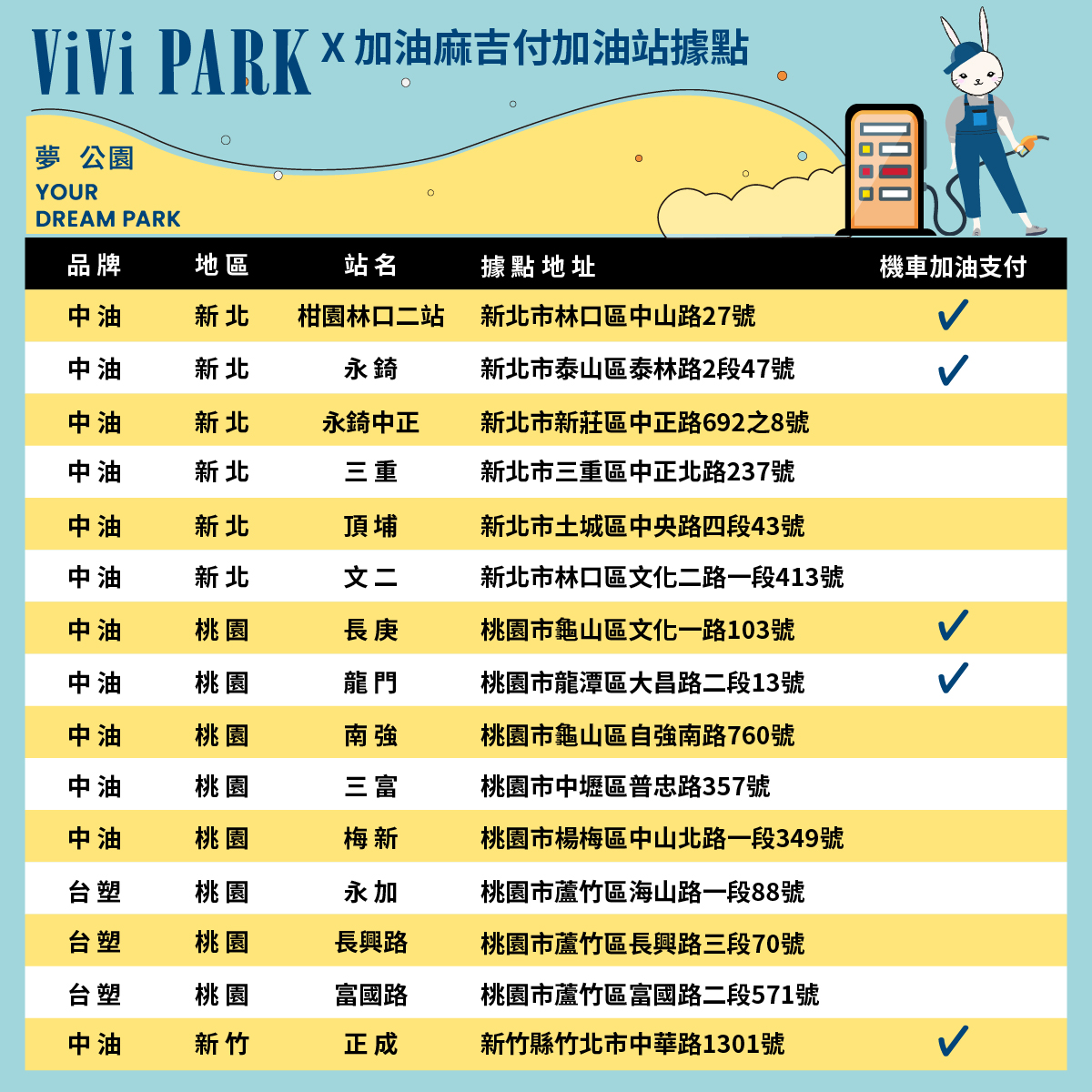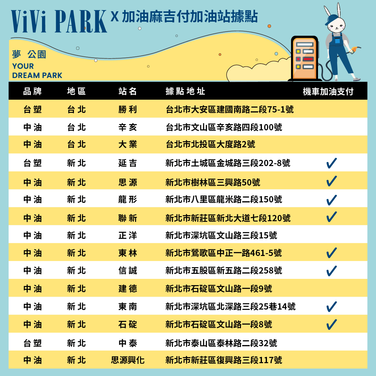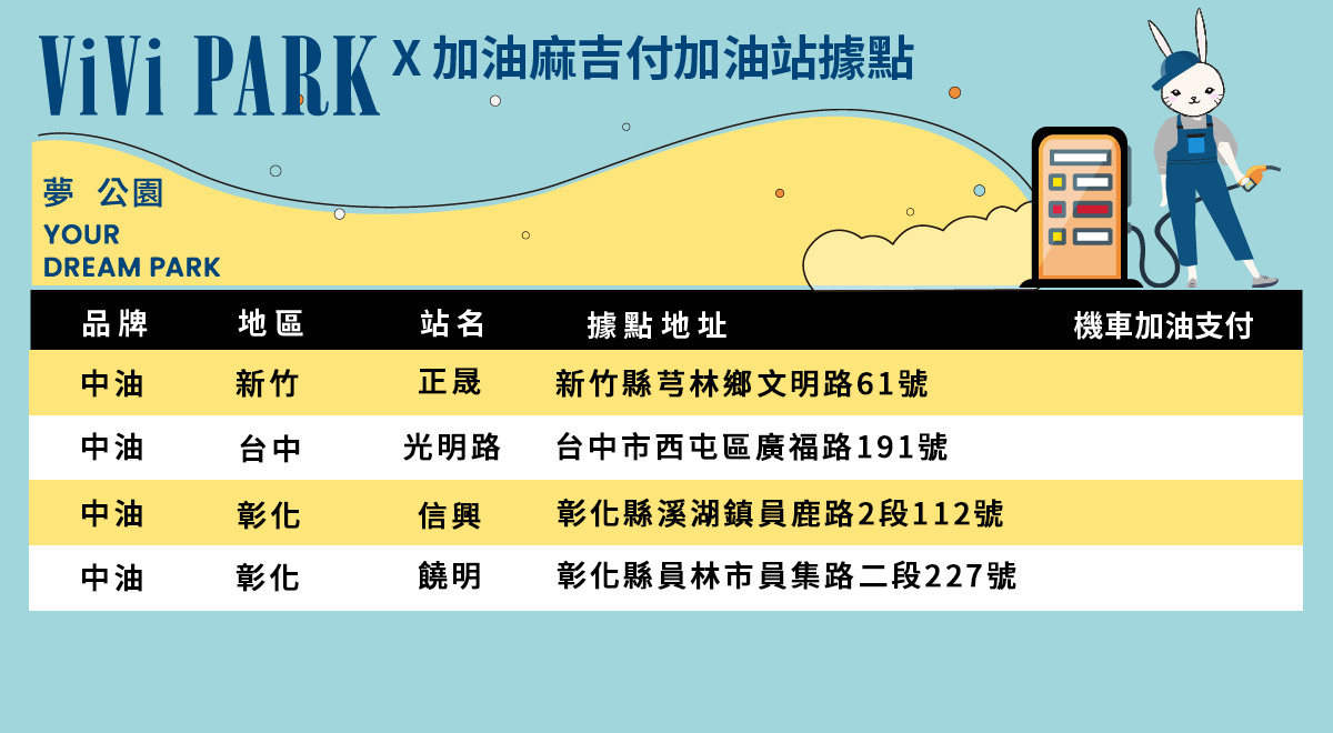 - 合作之麻吉付加油站名單: