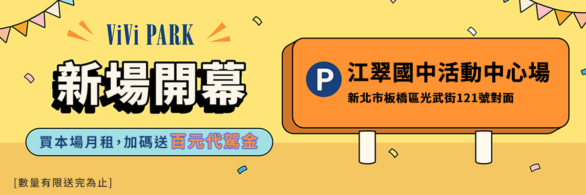 🎁凡於2026/1/31前在ViVi PARK APP首次購買【江翠國中活動中心停車場】月租,加碼回饋!