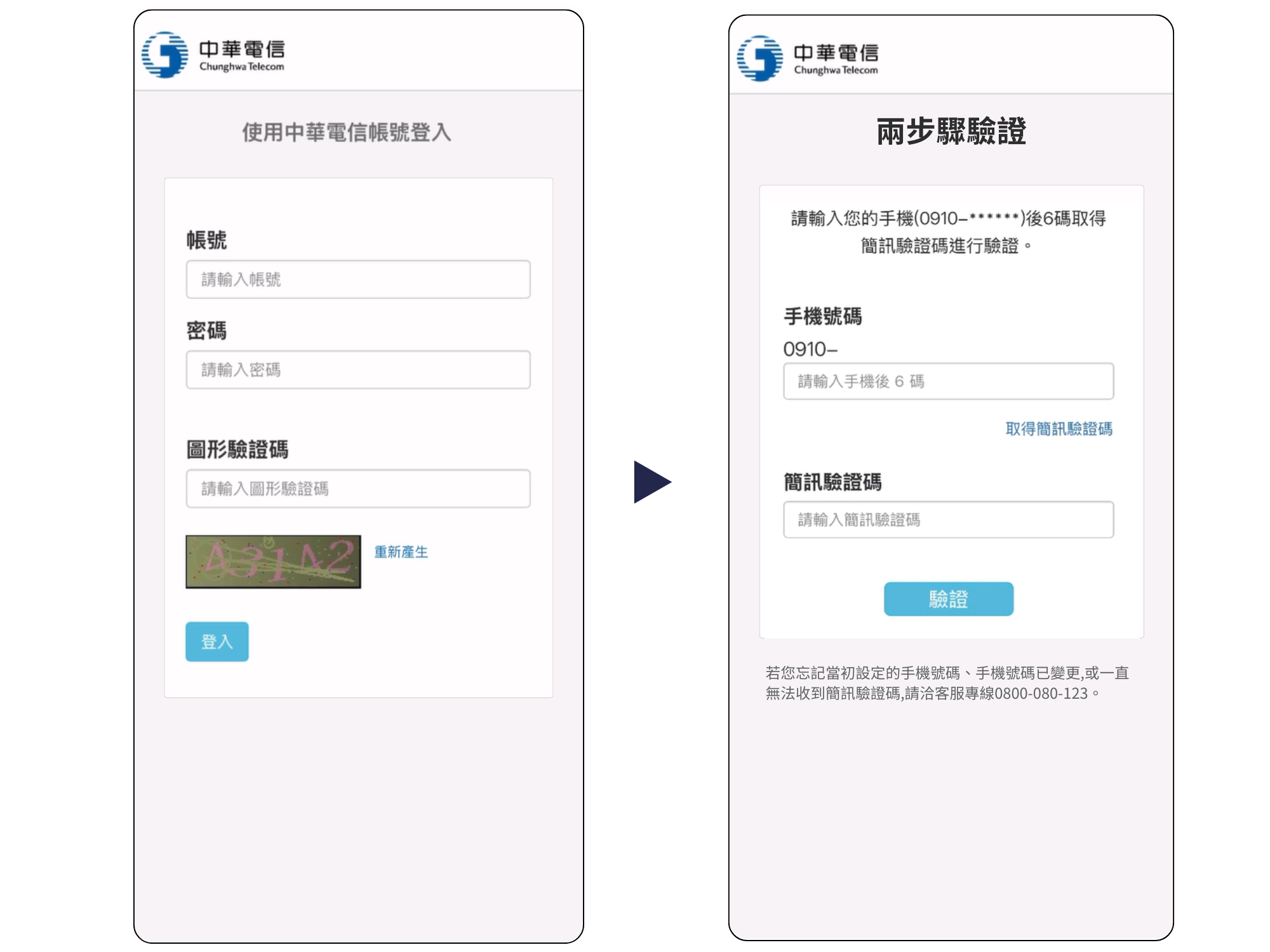 - 第一步:於ViVi PARK 網頁,輸入手機號碼和密碼,點擊「綁定中華電信會員」,並前往中華電信網頁進行帳號登入