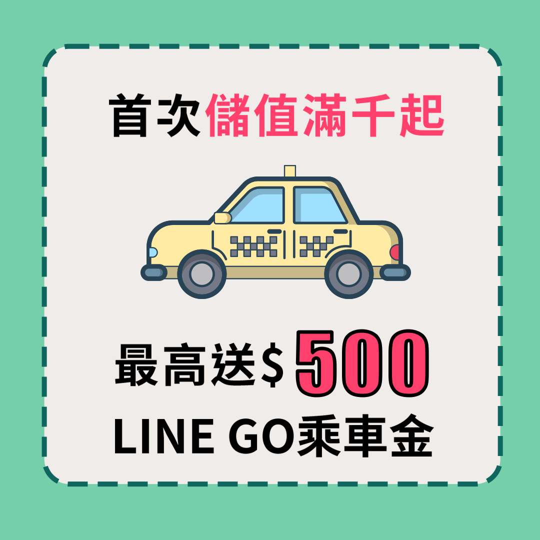 • 儲值$5,000~15,000 :送LINE GO乘車券 $500
