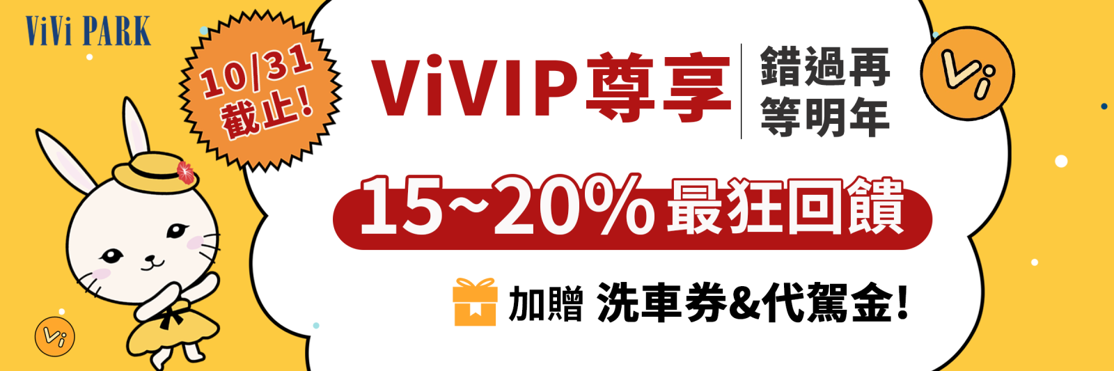 【ViVIP尊享計劃】點數月月領,三大方案任您選,享15~20%回饋!再送代駕金!