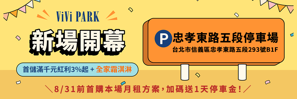 【新場開幕】首次購買忠孝東路五段停車場月租方案,最高再送1天停車金✨