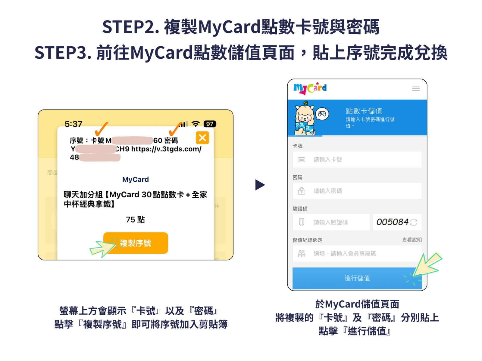 🔹 Step 2|複製MyCard點數卡號與密碼
