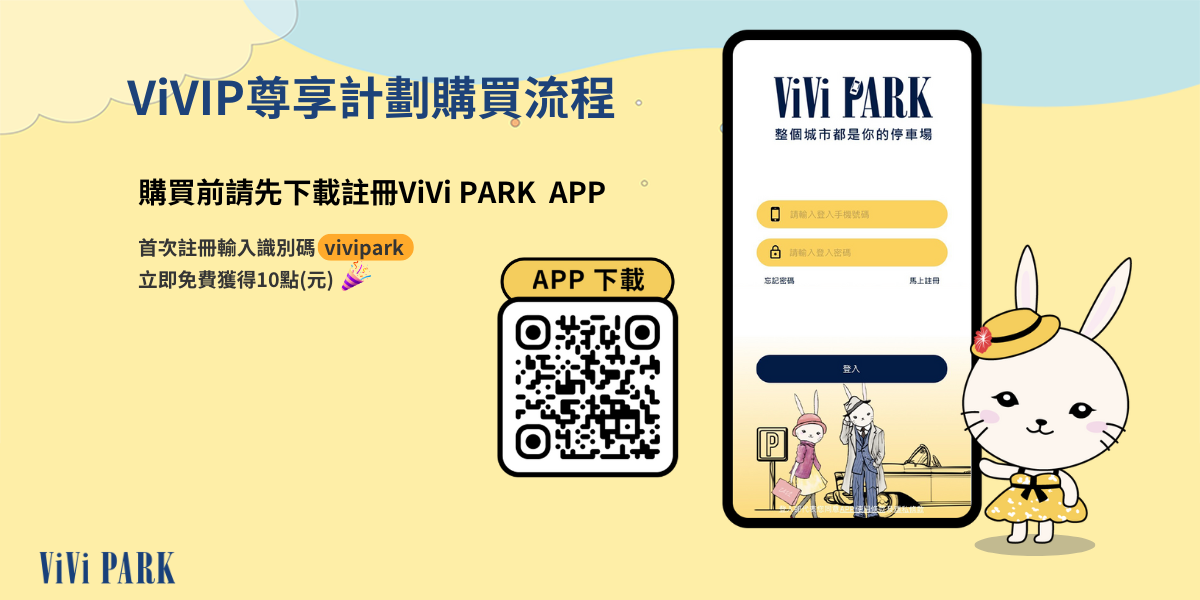 💕新朋友好禮:首次註冊ViVi PARK APP,輸入識別碼「vivipark」,免費獲得10點(元)! 👉APP註冊說明